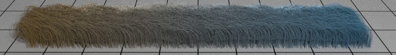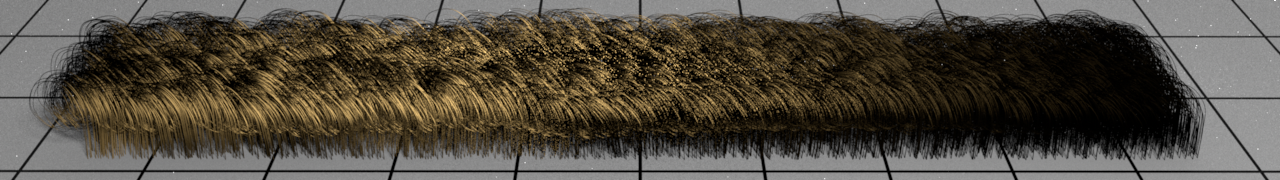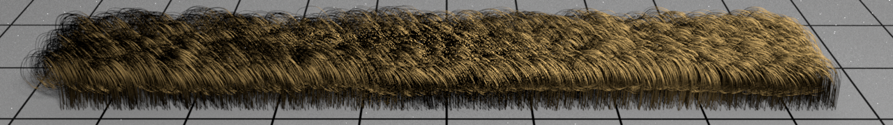 The Curves material aims to render hair or fur geometry with a realistic look. This kind of geometry is made up of hundreds of thousands long fibers, each fiber is cylinder shaped with an ellipse cross section and exibits microscopic tilted surface scales. This structure requires a specific shader to account the behavior of light scattering inside the fiber.