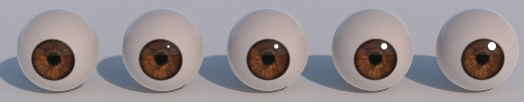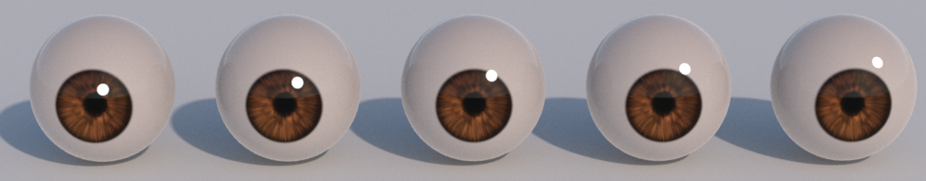 For artistic reasons, it is usually convenient to decouple highlight rendering from the actual eye lighting. The eye shader features a specifically deterministic and non physical highlight, which is controlled by its position relative to the iris edge. To activate this highlight, simply set the highlight size to any non zero value.