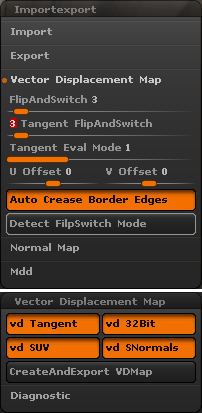 When exporting the vector displacement texture from ZBrush®, please use the following settings :