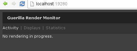 When properly set, Guerilla starts a minimalistic web server on the chosen port. Using a web browser (Google Chrome and Mozilla Firefox are recommended) connect to the remote computer (e.g. http://remotecomputer:19280) to open the monitor page up.