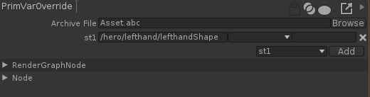 The PrimVarOverride node is set so the st1 override expands $(assetPath) with the corresponding Dynamic Attribute, that is /hero/lefthand/lefthandShape in our example.