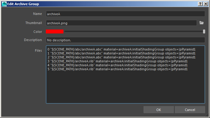 Replace the file in the slot 3, 4, 5 by the Guerilla archive file previously exported.- Save the Maya project.