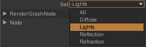 RenderGraph/Set node, and replace the All set by +SphereLights.