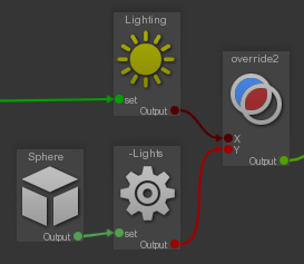 - Merge those nodes after the Lighting node of your RenderGraph in Override.