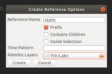 - In the Reference Options, click the Alembic Layers control, and pick the layered Alembic file.