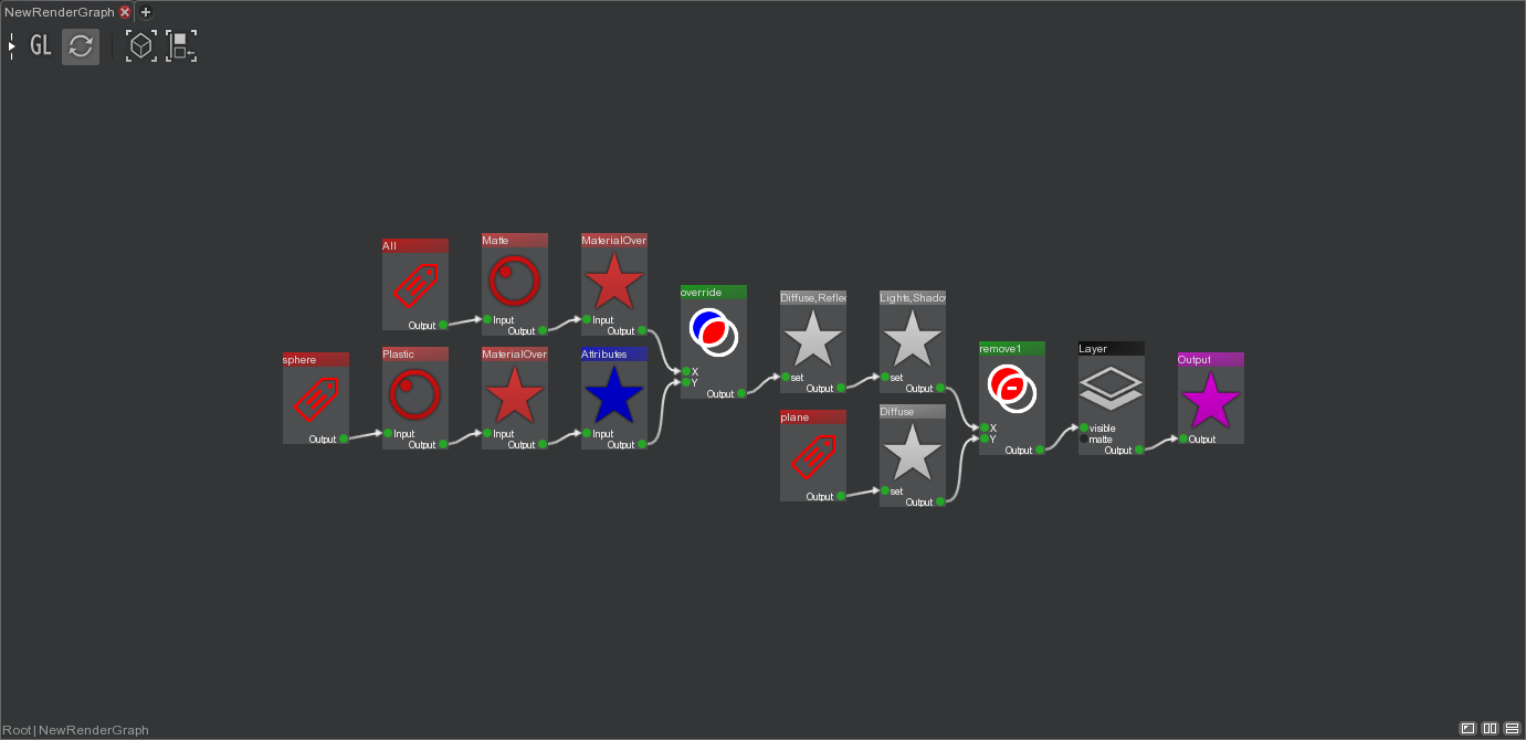 Double-click into the previous NewRenderGraph.Create a Set node, a binop.remove node, a Tags:plane node andconnect them as in the graph below.- Select the new Set node and select 'Diffuse' in the Set combo checkbox.