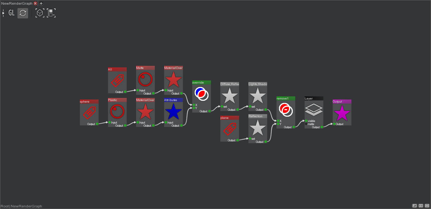 Double-click into the previous NewRenderGraph.Create a Set node, a binop.remove node, a Tags:plane node andconnect them as in the graph below.- Select the new Set node and select 'Reflection' in the Set combo checkbox.
