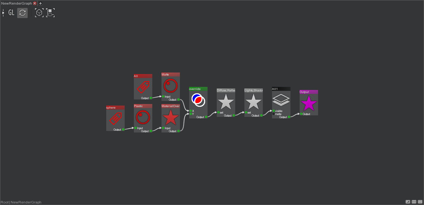 Double-click into the previous NewRenderGraph.Create a MaterialOverride node andconnect it as in the graph below.- Select the MaterialOverride node and type 'Albedo' in the text box and choose Color in the combo box and click on Add button of a properties view.