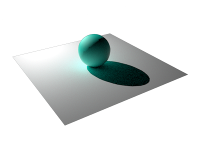 The sphere is now rendered with a bluish matte plastic. You can notice the sphere is diffusing light on the plane.