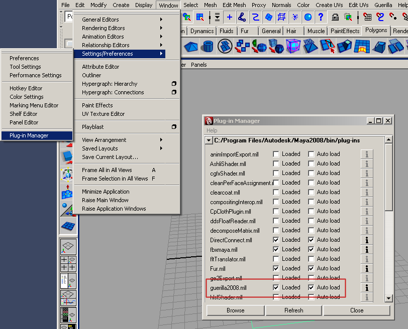 Install the version of Maya to Guerilla that matches your Maya installation. Then start the "Plug-in Manager" using the Maya's menu bar Window > Settings/Preferences > Plug-in Manager. Look for the guerillaXXXX.mll and check "Loaded" and "Auto load".