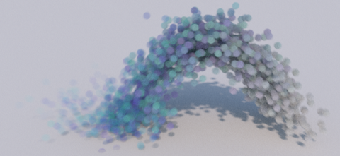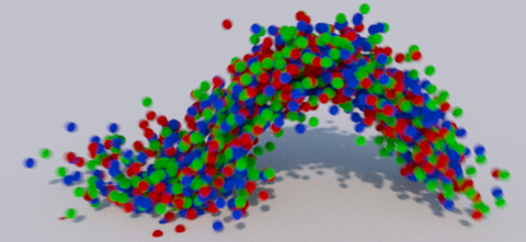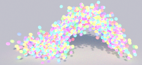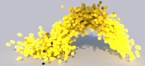 The particles can be shaded like any other object in Guerilla, but you can also create complex particle effects using the particle attributes. We'll show some simple exemples here.