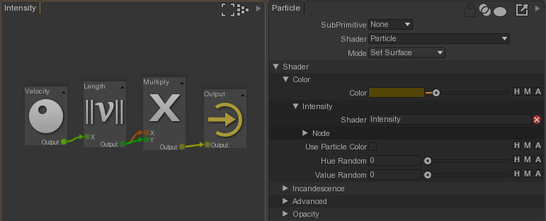 The particle attributes can also be accessed by the SL Box, to write more complex effects.