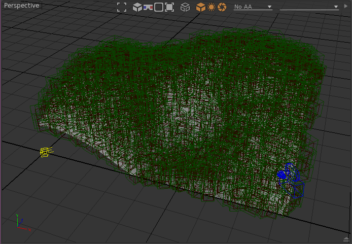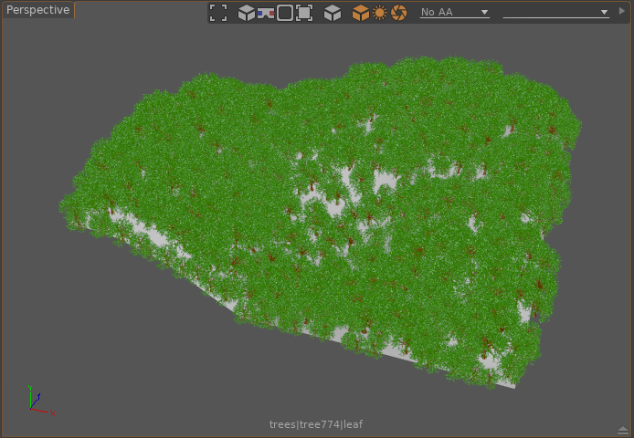 Click the Viewport Rendering Mode dropdown button, and choose Raytraced with colors. The scene will be interactively raytraced with a simplistic appearance.