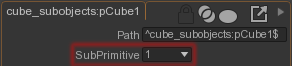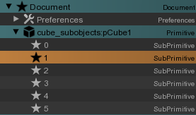 A sub primitive, or faceset, is a subset of the object polygons. The sub primitives must be prepared in the modeling software. For Maya®, you have to assign different materials to the polygon sets before to export your model.