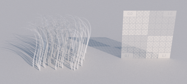 - transparent fur/hair where the opacity along the strand is the same for every strand.