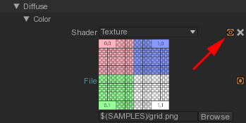 - Press the texture's inspection icon.