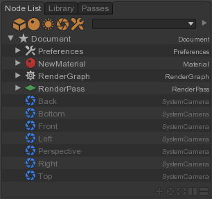 By default when you create a Node List view it displays all nodes of the scene graph collapsed. You can expand or collapse a node to see or unsee its children nodes.