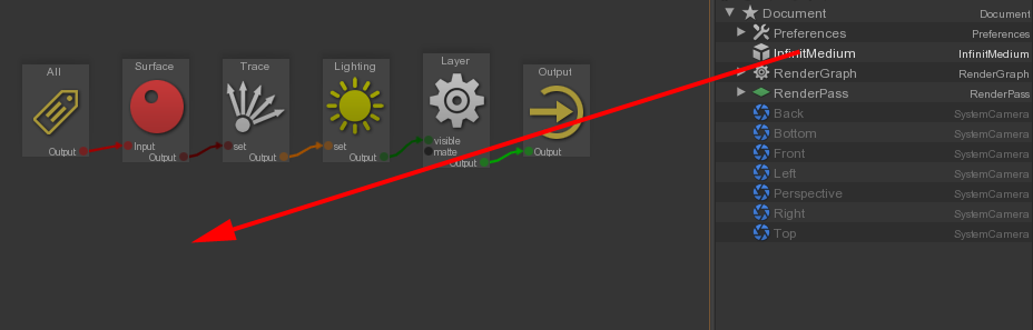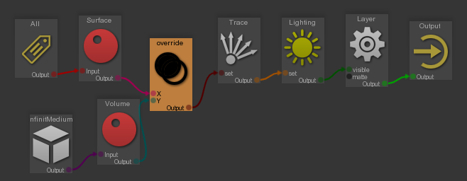 Connect the new nodes to the RenderGraph flow (here in override mode).