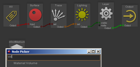 To simply add an infinite volume to a project, one can add an InfiniteMedium primitive using "Create -> Infinite Medium" and assign it to a volume shader.