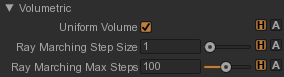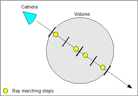 The heterogeneous density volumes are sampled using ray marching. The ray marching size is controlled by the RenderGraph Attribute node in "Volumetric -> Ray Marching Step Size". This step is expressed in world space. The maximum step count allowed is controlled by "Volumetric -> Ray Marching Max Steps".