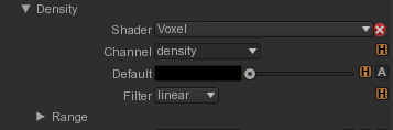 On the Volume -> Density attribute, press the M button and select the Voxel sub-shader.