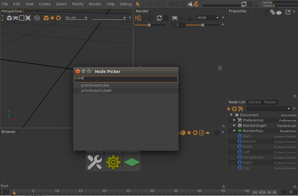 Use the Node Picker to add objects to your scene. Press Ctrl+Space to open the node picker, then type some characters to filter by name.