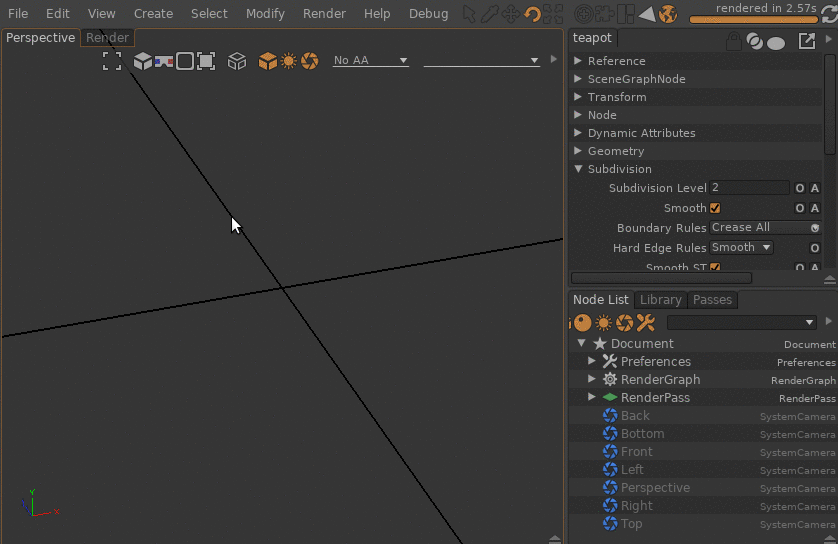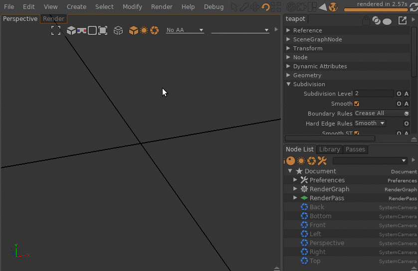 The Inside Selection option loads the reference node into the currently selected node. When unchecked, the reference node is loaded at the root of the scene.